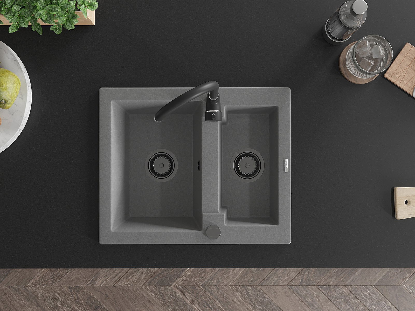 Die Spüle besteht aus hochwertigem Granit. Es ist eine elegante und vor allem praktische Ergänzung zu jeder Küche, unabhängig von ihrem Stil. Hohe Qualität und Granitdauer sorgen für eine langjährige Nutzung.