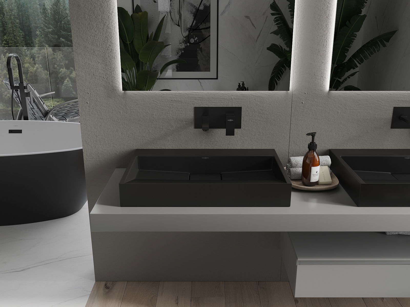 Mexen Ava Aufsatzwaschbecken aus Konglomerat B/O 70 x 46 cm, schwarz - 23017070