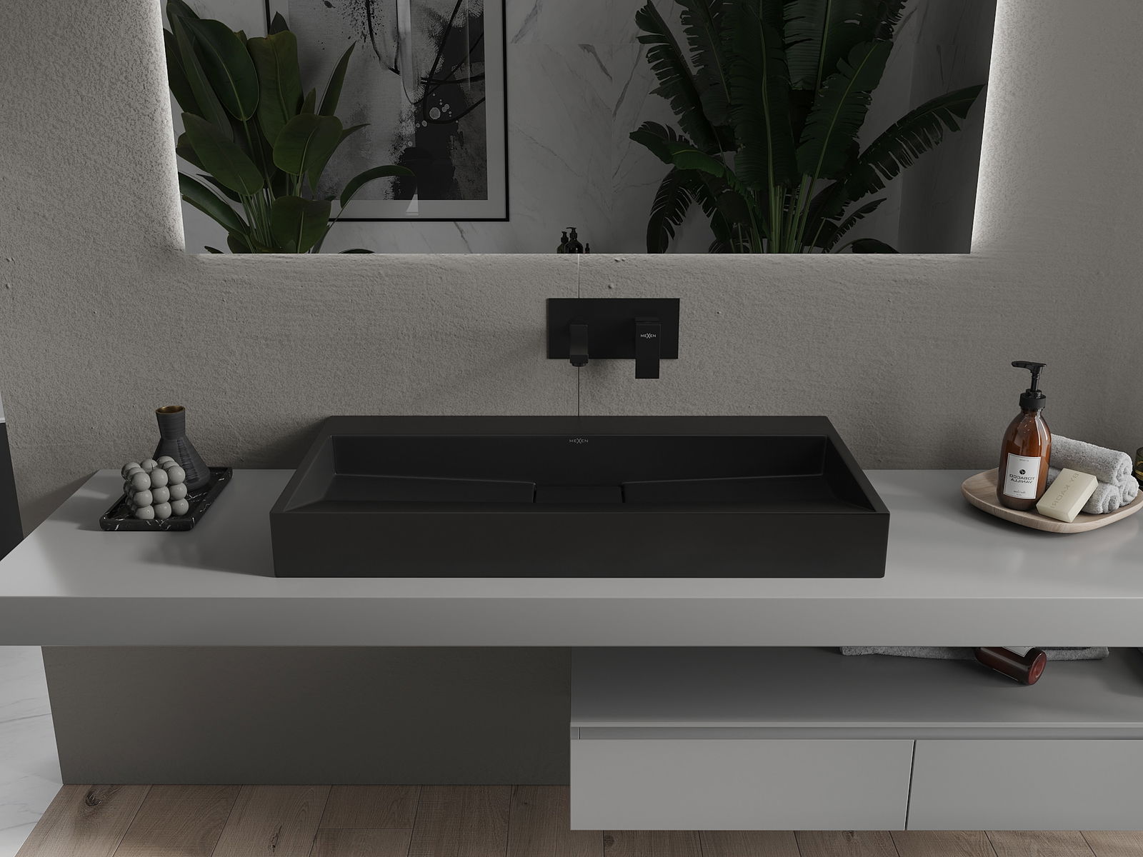 Mexen Ava Aufsatzwaschbecken aus Konglomerat B/O 90 x 46 cm, schwarz - 23019070