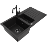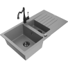 Die Spüle besteht aus hochwertigem Granit. Es ist eine elegante und vor allem praktische Ergänzung zu jeder Küche, unabhängig von ihrem Stil. Hohe Qualität und Granitdauer sorgen für eine langjährige Nutzung.