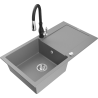 Die Spüle besteht aus hochwertigem Granit. Es ist eine elegante und vor allem praktische Ergänzung zu jeder Küche, unabhängig von ihrem Stil. Hohe Qualität und Granitdauer sorgen für eine langjährige Nutzung.
