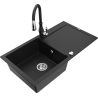 Mexen Leo Granitspüle 1-Becken mit Abtropffläche und Küchenarmatur Savita, schwarz/silber metallic - 6501-73-672601-70