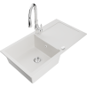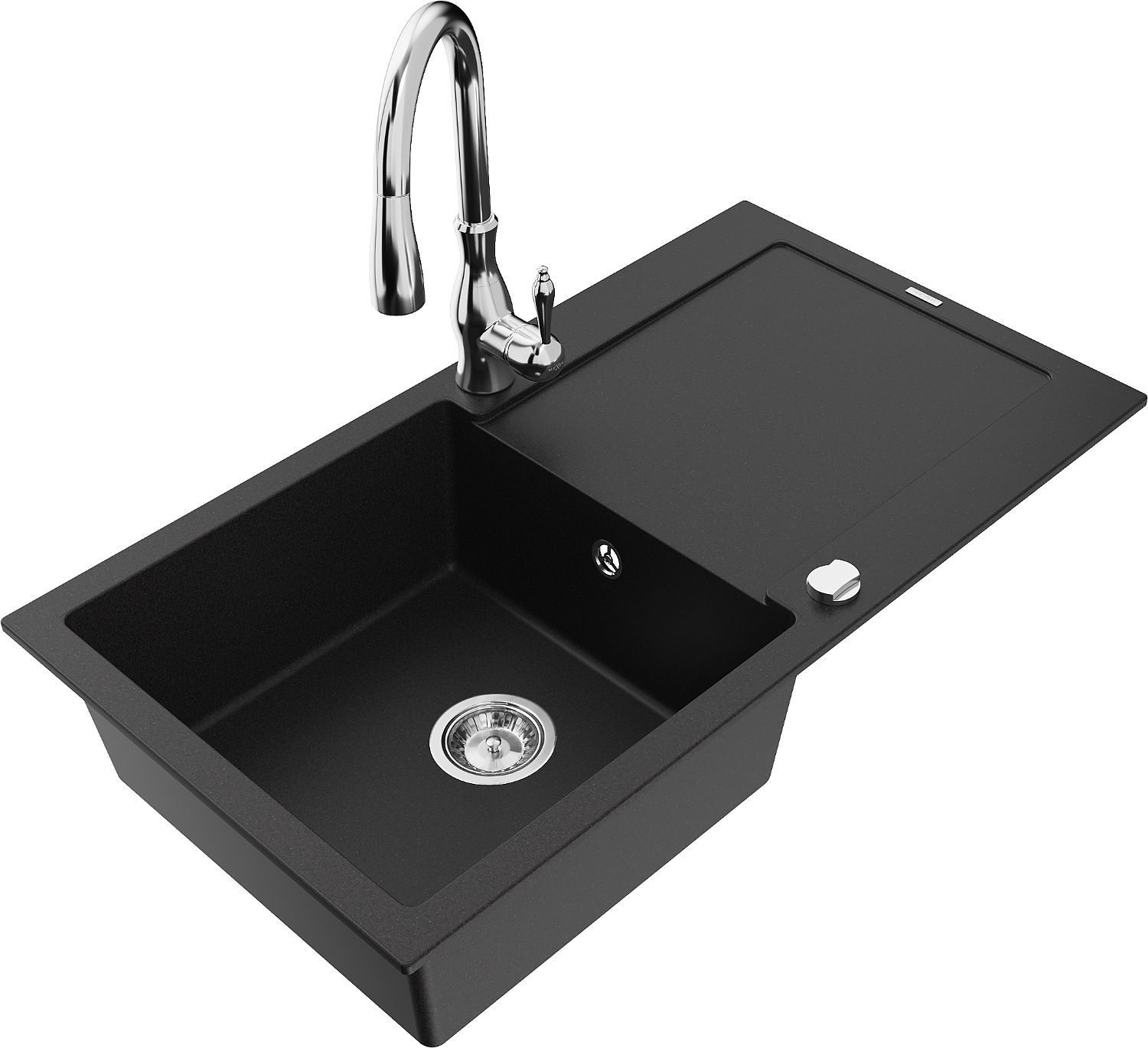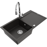Mexen Leo Einbauspüle aus Granit mit 1 Becken und Abtropffläche sowie Küchenarmatur Savita, schwarz - 6501-77-672601-00