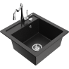 Mexen Vito Granitspüle 1-Becken mit Küchenarmatur Carla, schwarz gesprenkelt - 6503-76-670700-00
