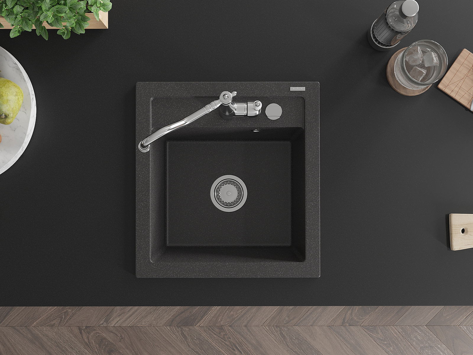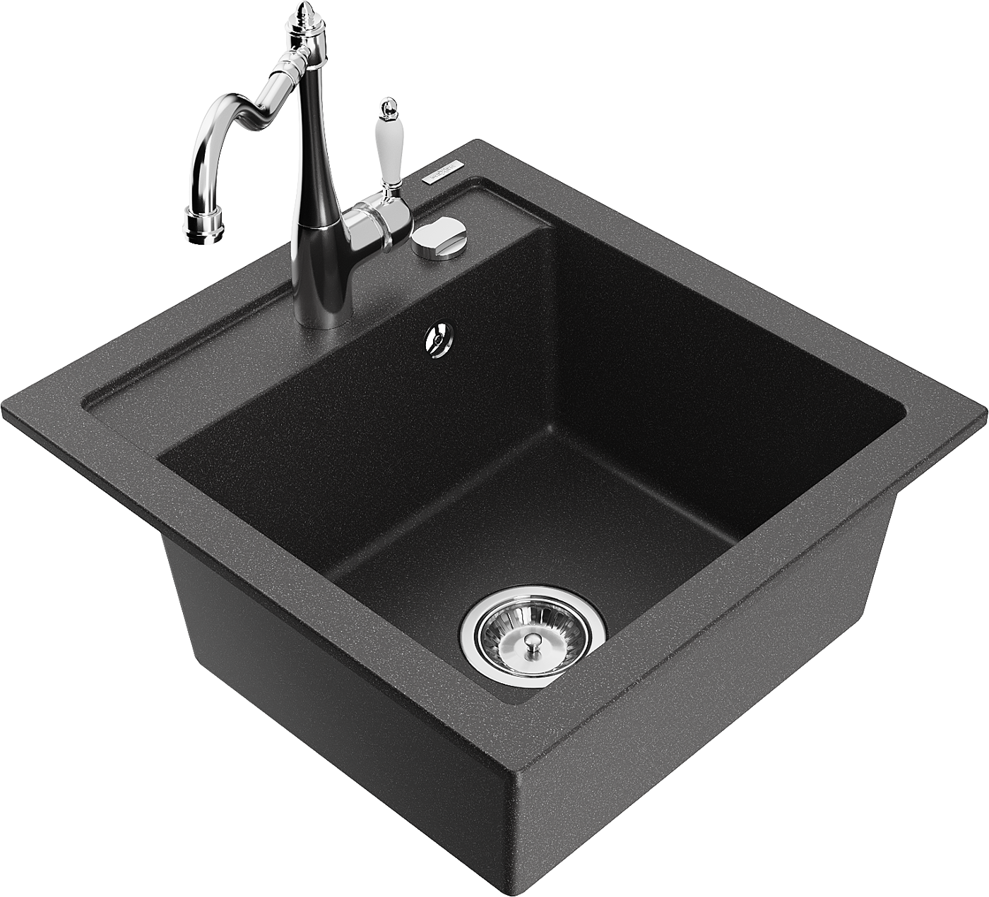 Die Spüle besteht aus hochwertigem Granit. Es ist eine elegante und vor allem praktische Ergänzung zu jeder Küche, unabhängig von ihrem Stil. Hohe Qualität und Granitdauer sorgen für eine langjährige Nutzung.