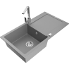 Die Spüle besteht aus hochwertigem Granit. Es ist eine elegante und vor allem praktische Ergänzung zu jeder Küche, unabhängig von ihrem Stil. Hohe Qualität und Granitdauer sorgen für eine langjährige Nutzung.