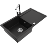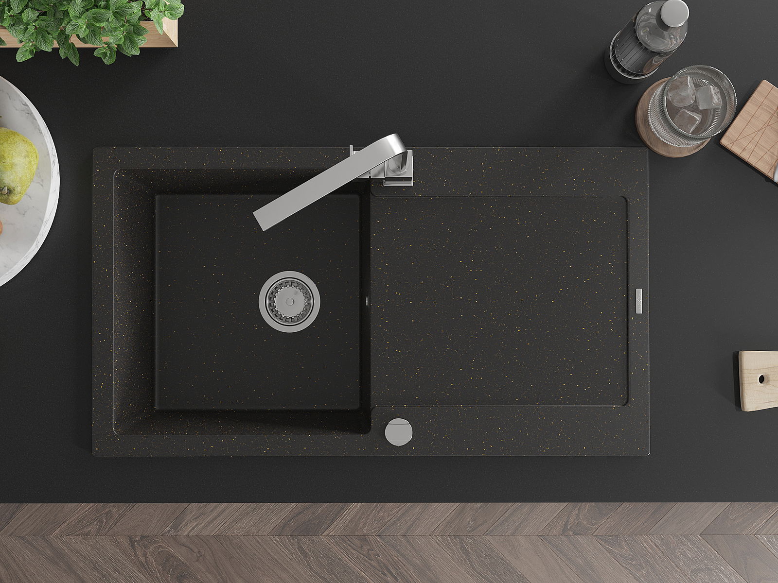 Mexen Leo Granitspüle 1-beckig mit Abtropffläche und Küchenarmatur Rita, schwarz/gold Metallic - 6501-75-670300-00