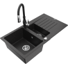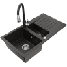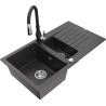 Mexen Matias Granitspüle 1,5-Becken mit Abtropffläche und Küchenarmatur Savita, grau - 6502-71-672601-70