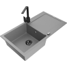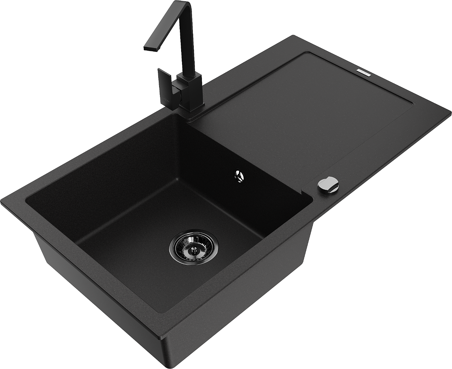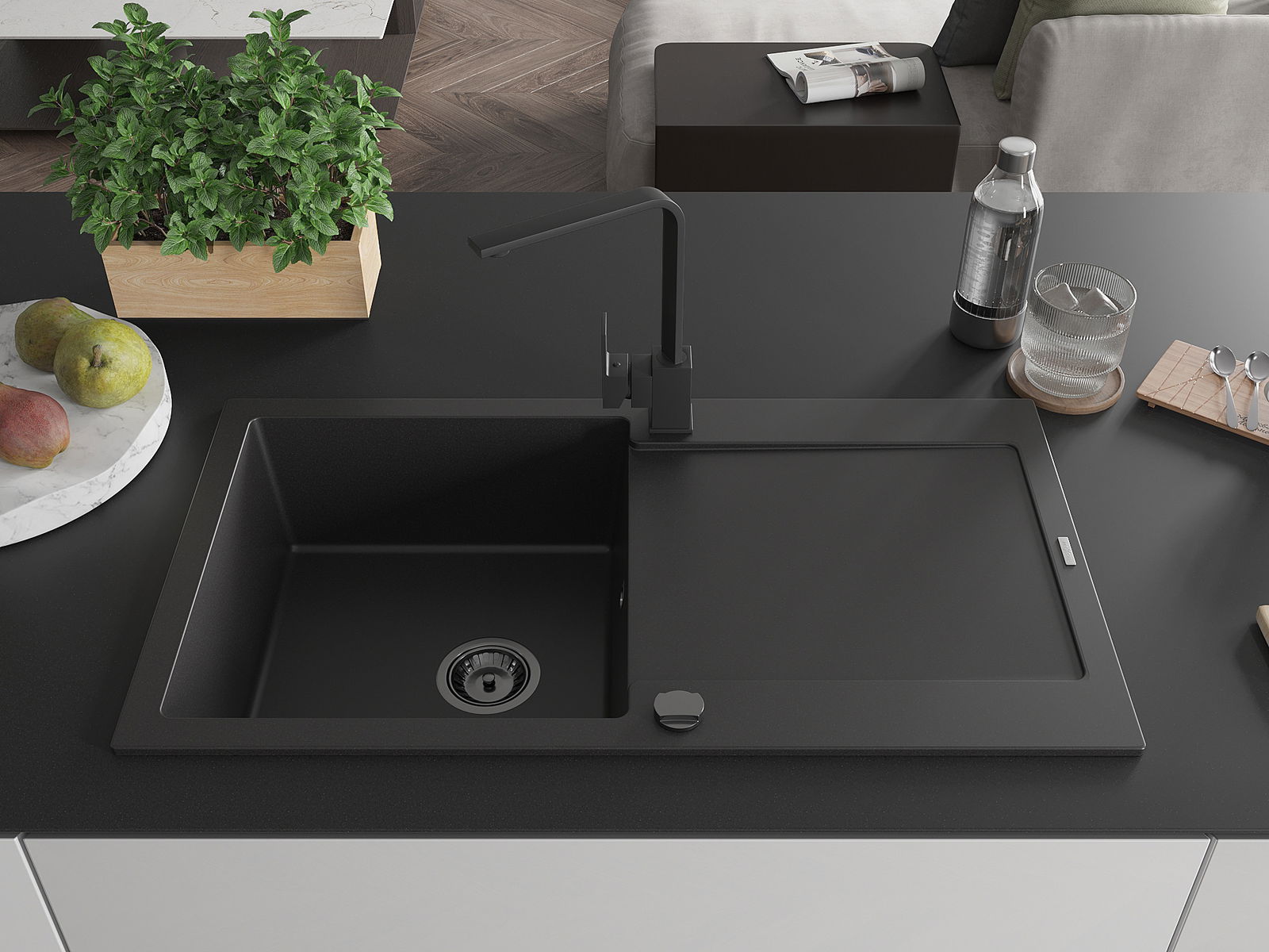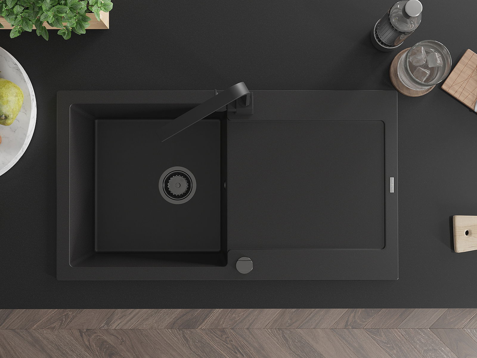 Mexen Leo Granitspüle 1-Becken mit Abtropffläche und Küchenarmatur Rita, Schwarz - 6501-77-670300-70-B