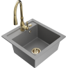 Die Spüle besteht aus hochwertigem Granit. Es ist eine elegante und vor allem praktische Ergänzung zu jeder Küche, unabhängig von ihrem Stil. Hohe Qualität und Granitdauer sorgen für eine langjährige Nutzung.