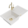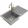 Die Spüle besteht aus hochwertigem Granit. Es ist eine elegante und vor allem praktische Ergänzung zu jeder Küche, unabhängig von ihrem Stil. Hohe Qualität und Granitdauer sorgen für eine langjährige Nutzung.