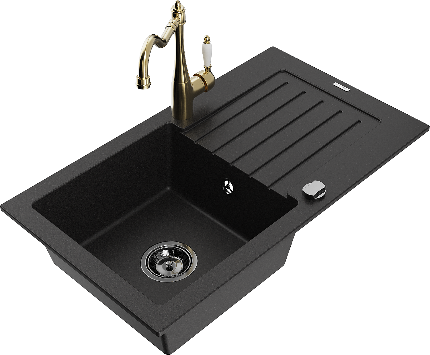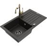 Mexen Pablo Granitspüle 1-Becken mit Abtropffläche und Küchenarmatur Carla, schwarz - 6510-77-670700-50-B