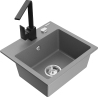 Die Spüle besteht aus hochwertigem Granit. Es ist eine elegante und vor allem praktische Ergänzung zu jeder Küche, unabhängig von ihrem Stil. Hohe Qualität und Granitdauer sorgen für eine langjährige Nutzung.