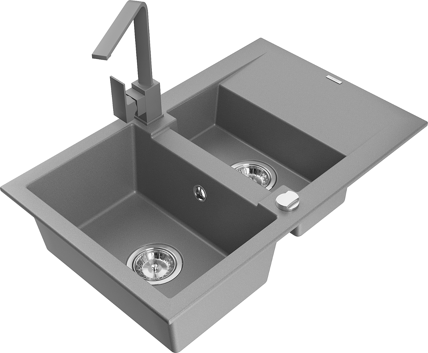 Mexen Gaspar Granitspüle 1,5-beckig mit Abtropffläche und Küchenarmatur Rita, grau - 6507-71-670300-71