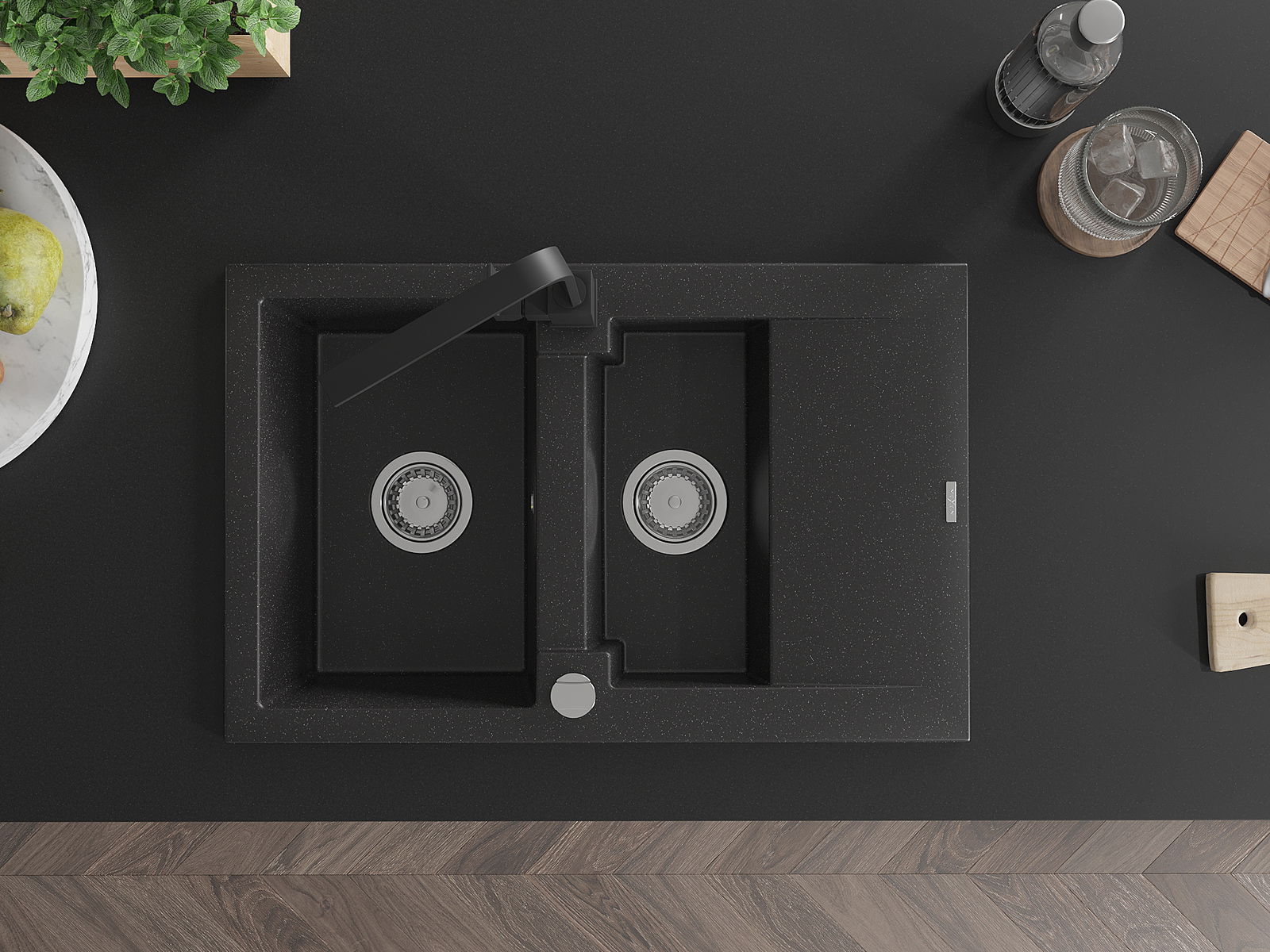 Dank des universellen Montagesystems ist die Spüle reversibel und der Abfluss kann links oder rechts auf der Theke montiert werden. Auf diese Weise können Sie die Seite einfach an Ihre Bedürfnisse und Bedingungen einstellen.