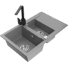 Die Spüle besteht aus hochwertigem Granit. Es ist eine elegante und vor allem praktische Ergänzung zu jeder Küche, unabhängig von ihrem Stil. Hohe Qualität und Granitdauer sorgen für eine langjährige Nutzung.