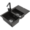 Mexen Gaspar Granit-Spüle 1,5-Kammer mit Abtropffläche und Küchenarmatur Rita, schwarz gesprenkelt - 6507-76-670300-70
