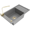 Die Spüle besteht aus hochwertigem Granit. Es ist eine elegante und vor allem praktische Ergänzung zu jeder Küche, unabhängig von ihrem Stil. Hohe Qualität und Granitdauer sorgen für eine langjährige Nutzung.