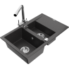 Die Spüle besteht aus hochwertigem Granit. Es ist eine elegante und vor allem praktische Ergänzung zu jeder Küche, unabhängig von ihrem Stil. Hohe Qualität und Granitdauer sorgen für eine langjährige Nutzung.