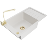 Die Spüle besteht aus hochwertigem Granit. Es ist eine elegante und vor allem praktische Ergänzung zu jeder Küche, unabhängig von ihrem Stil. Hohe Qualität und Granitdauer sorgen für eine langjährige Nutzung.