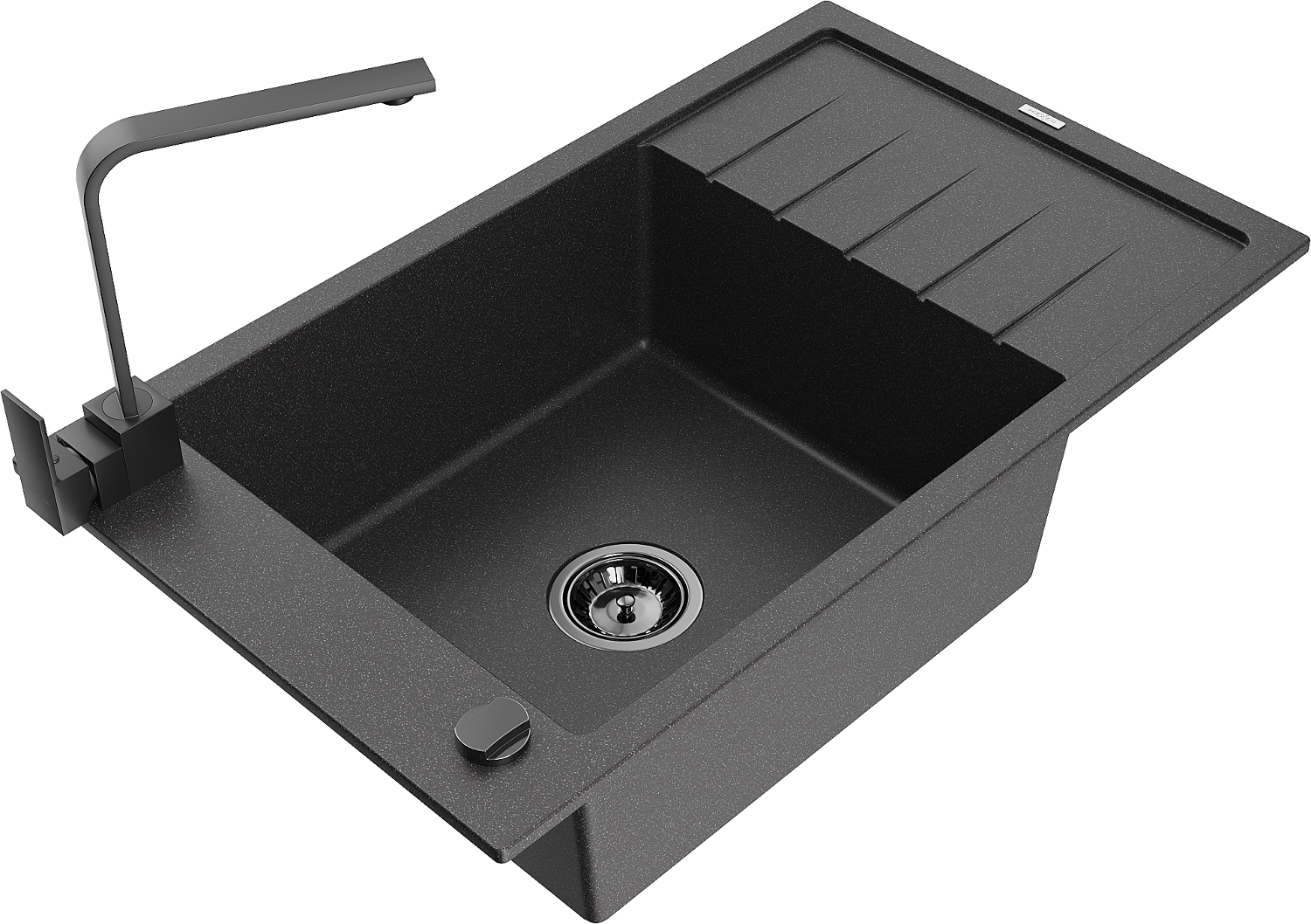 Mexen Elias Granitspüle 1-beckig mit Abtropffläche und Küchenarmatur Rita, schwarz gesprenkelt - 6511-76-670300-70-B