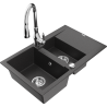 Mexen Gaspar Granitspüle 1,5-Becken mit Abtropffläche und Küchenarmatur Savita, grau - 6507-71-672601-71