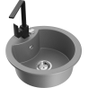 Die Spüle besteht aus hochwertigem Granit. Es ist eine elegante und vor allem praktische Ergänzung zu jeder Küche, unabhängig von ihrem Stil. Hohe Qualität und Granitdauer sorgen für eine langjährige Nutzung.
