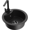 Die Spüle besteht aus hochwertigem Granit. Es ist eine elegante und vor allem praktische Ergänzung zu jeder Küche, unabhängig von ihrem Stil. Hohe Qualität und Granitdauer sorgen für eine langjährige Nutzung.
