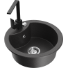 Die Spüle besteht aus hochwertigem Granit. Es ist eine elegante und vor allem praktische Ergänzung zu jeder Küche, unabhängig von ihrem Stil. Hohe Qualität und Granitdauer sorgen für eine langjährige Nutzung.