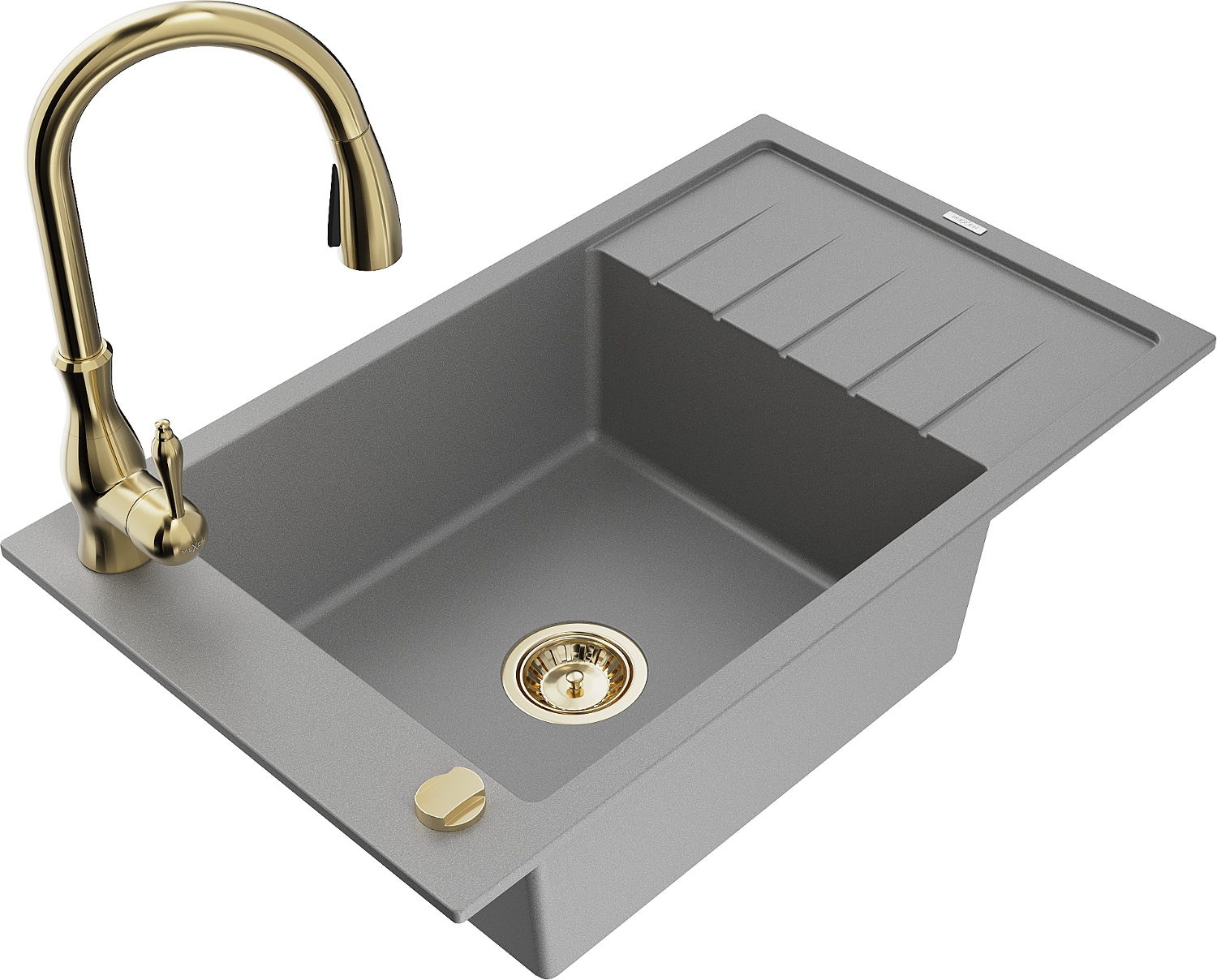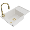 Mexen Elias Granitspüle 1-beckig mit Abtropffläche und Küchenarmatur Savita, grau - 6511-71-672601-50