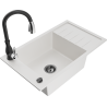 Die Spüle besteht aus hochwertigem Granit. Es ist eine elegante und vor allem praktische Ergänzung zu jeder Küche, unabhängig von ihrem Stil. Hohe Qualität und Granitdauer sorgen für eine langjährige Nutzung.