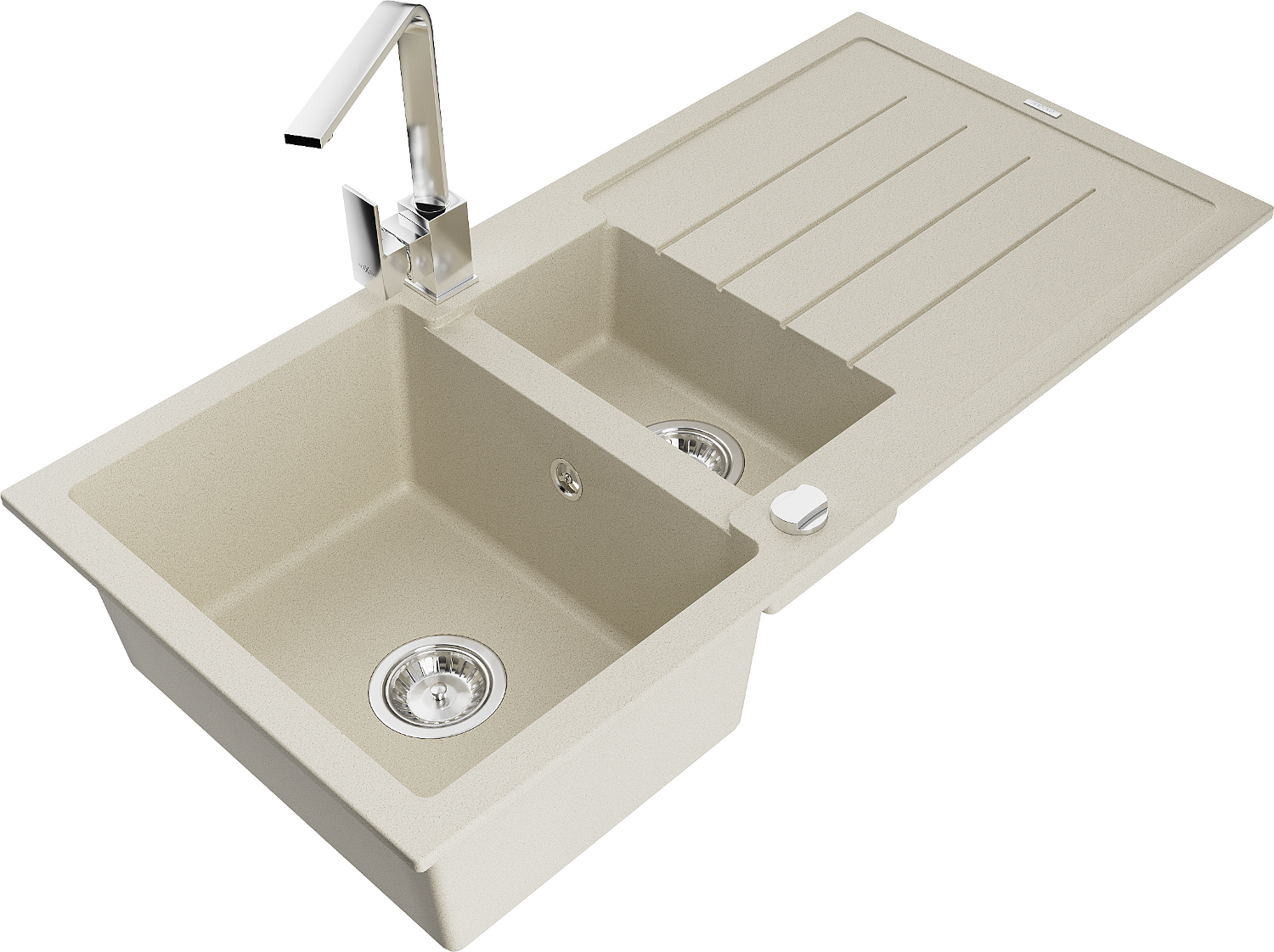 Mexen Andres Granitspüle 1,5-beckig mit Abtropffläche und Küchenarmatur Rita, beige - 6515-69-670300-00