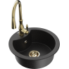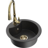 Die Spüle besteht aus hochwertigem Granit. Es ist eine elegante und vor allem praktische Ergänzung zu jeder Küche, unabhängig von ihrem Stil. Hohe Qualität und Granitdauer sorgen für eine langjährige Nutzung.
