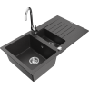 Die Spüle besteht aus hochwertigem Granit. Es ist eine elegante und vor allem praktische Ergänzung zu jeder Küche, unabhängig von ihrem Stil. Hohe Qualität und Granitdauer sorgen für eine langjährige Nutzung.
