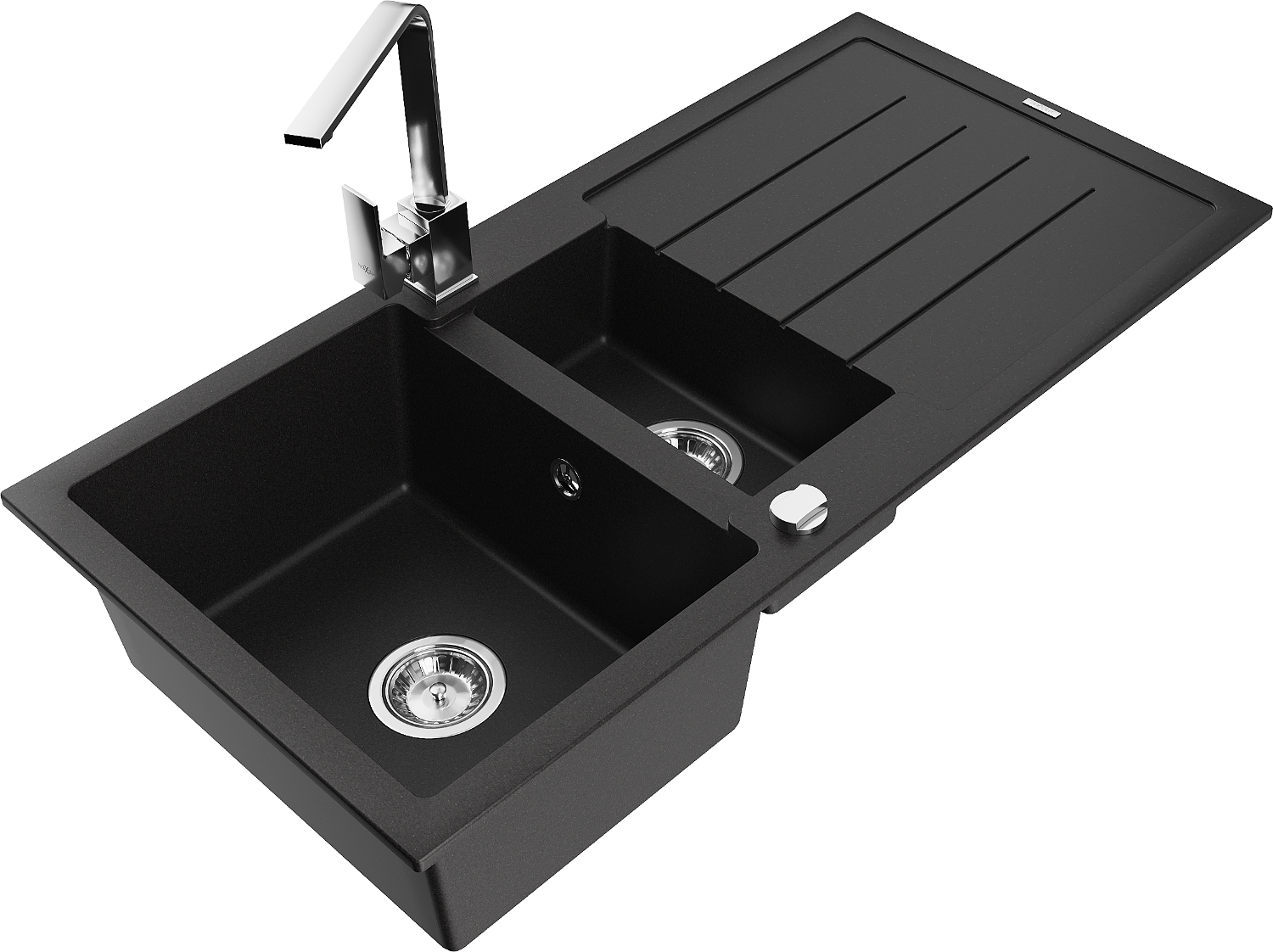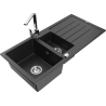 Mexen Andres Granitspüle 1,5-Becken mit Abtropffläche und Küchenarmatur Rita, schwarz - 6515-77-670300-00