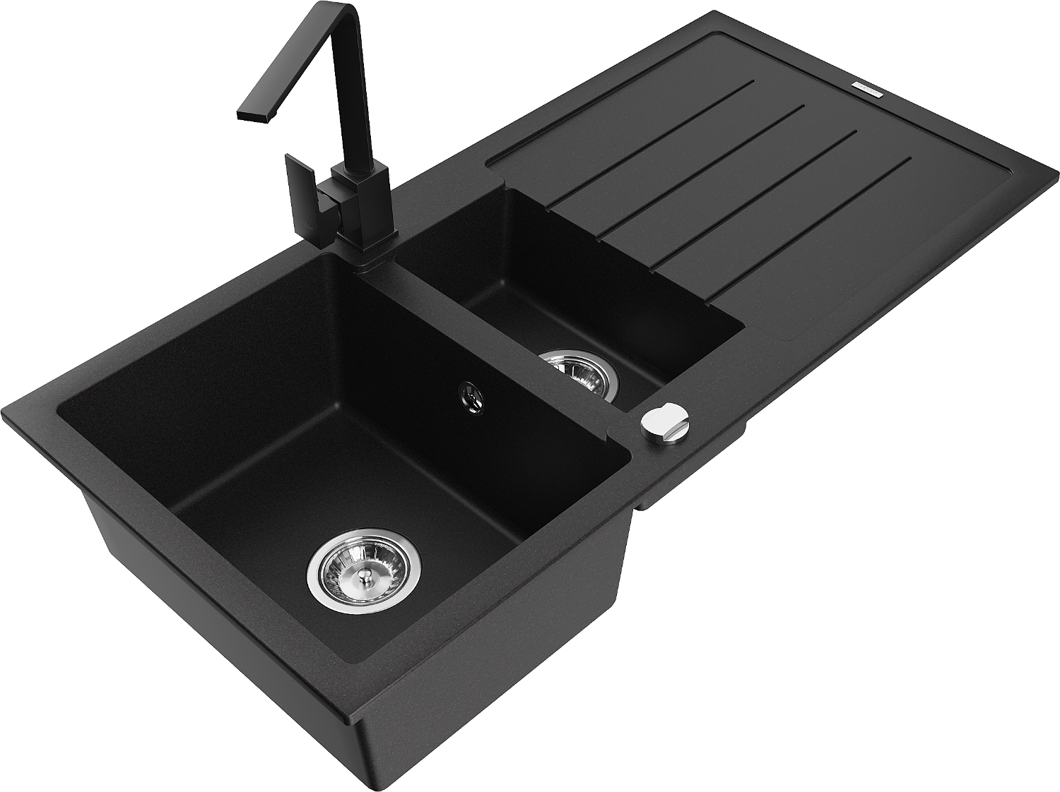 Mexen Andres Granitspüle 1,5-Becken mit Abtropffläche und Küchenarmatur Rita, schwarz - 6515-77-670300-70