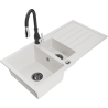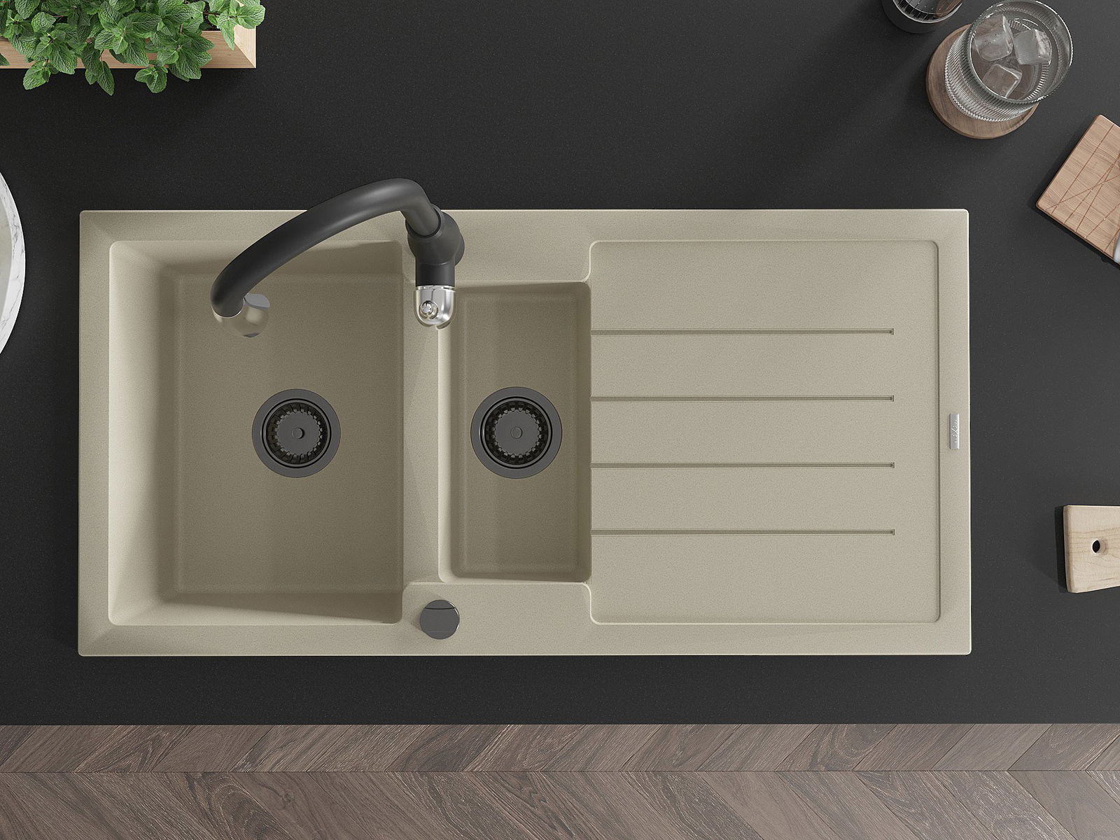 Mexen Andres Granitspüle 1,5-Becken mit Ablage und Küchenarmatur Savita, beige - 6515-69-672601-70