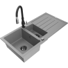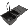 Die Spüle besteht aus hochwertigem Granit. Es ist eine elegante und vor allem praktische Ergänzung zu jeder Küche, unabhängig von ihrem Stil. Hohe Qualität und Granitdauer sorgen für eine langjährige Nutzung.