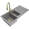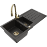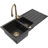 Mexen Andres Granitspüle 1,5-Becken mit Abtropffläche und Küchenarmatur Savita, schwarz gesprenkelt - 6515-76-672601-50