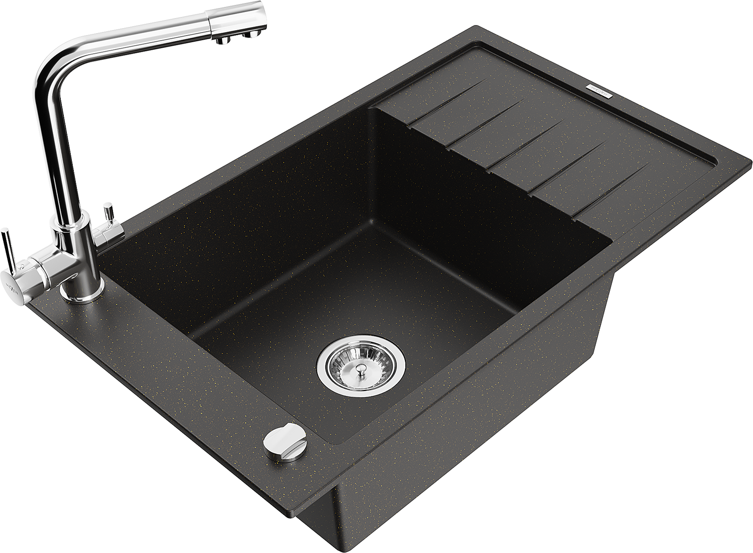 Mexen Elias Granitspüle 1-Becken mit Abtropffläche und Küchenarmatur Duero, schwarz/gold metallic - 6511-75-671600-00