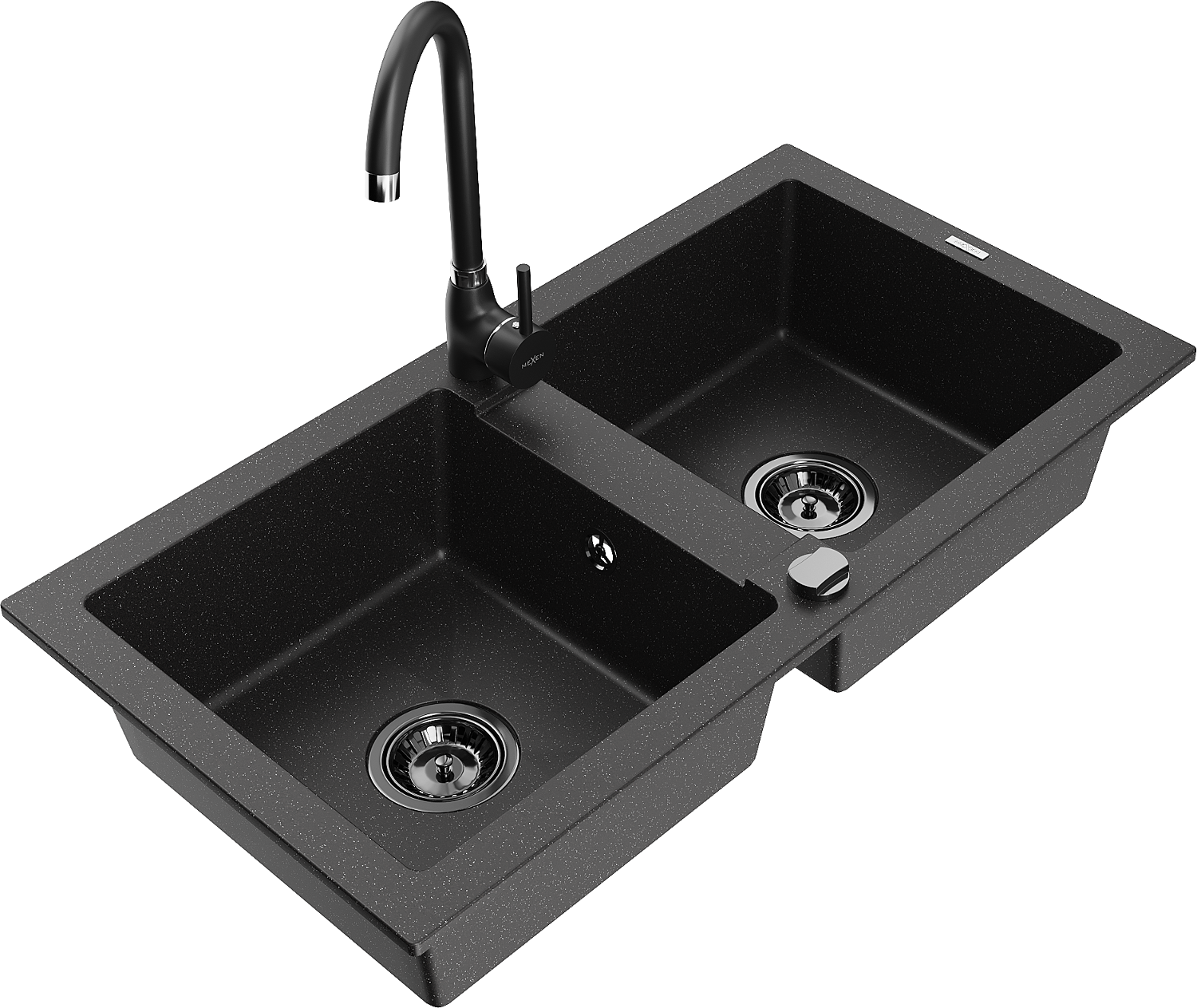 Mexen Mario 2-Kammer Granitspüle mit Küchenarmatur Telma, schwarz/silber - 6504-73-670200-70-B