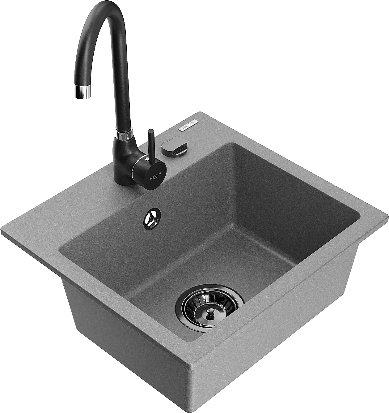 Mexen Milo Granitspüle 1-Becken mit Küchenarmatur Telma, grau - 6505-71-670200-70-B