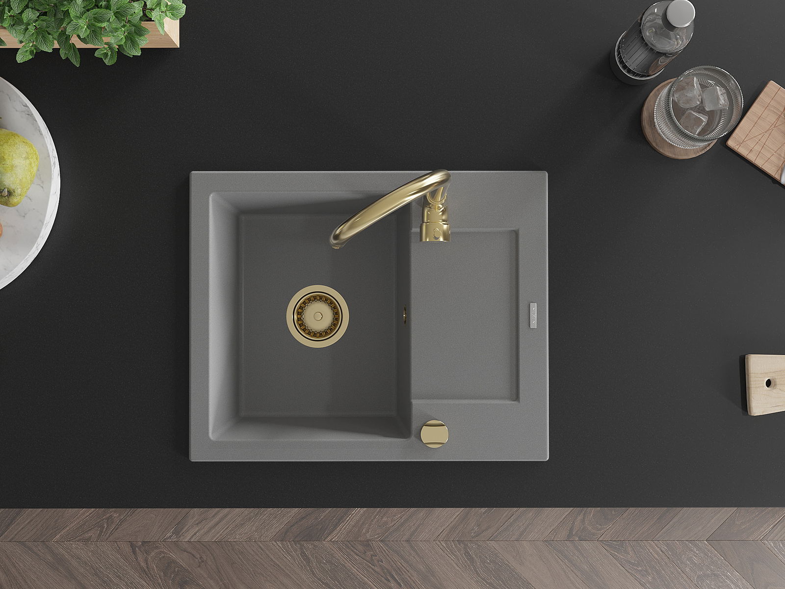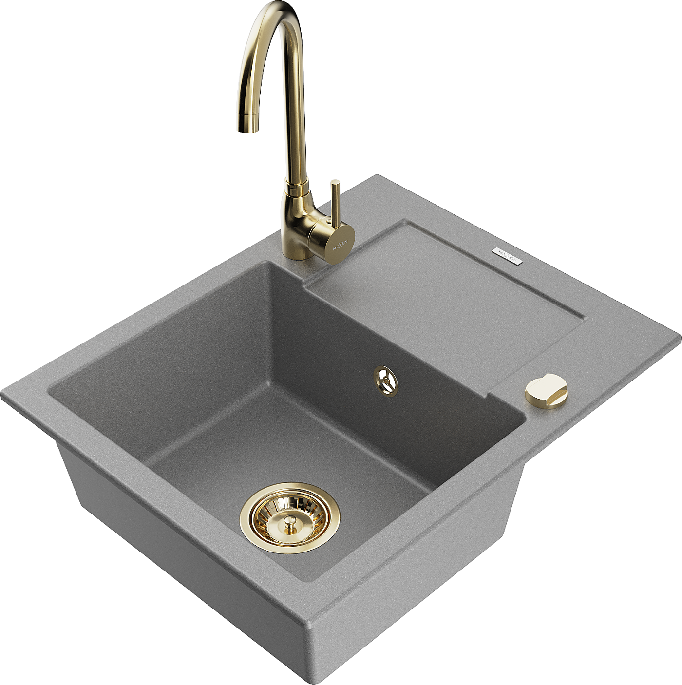 Mexen Enzo Granitspüle 1-Becken mit Abtropffläche und Küchenarmatur Telma, grau - 6506-71-670200-50
