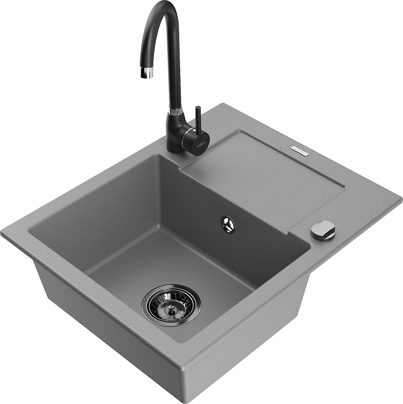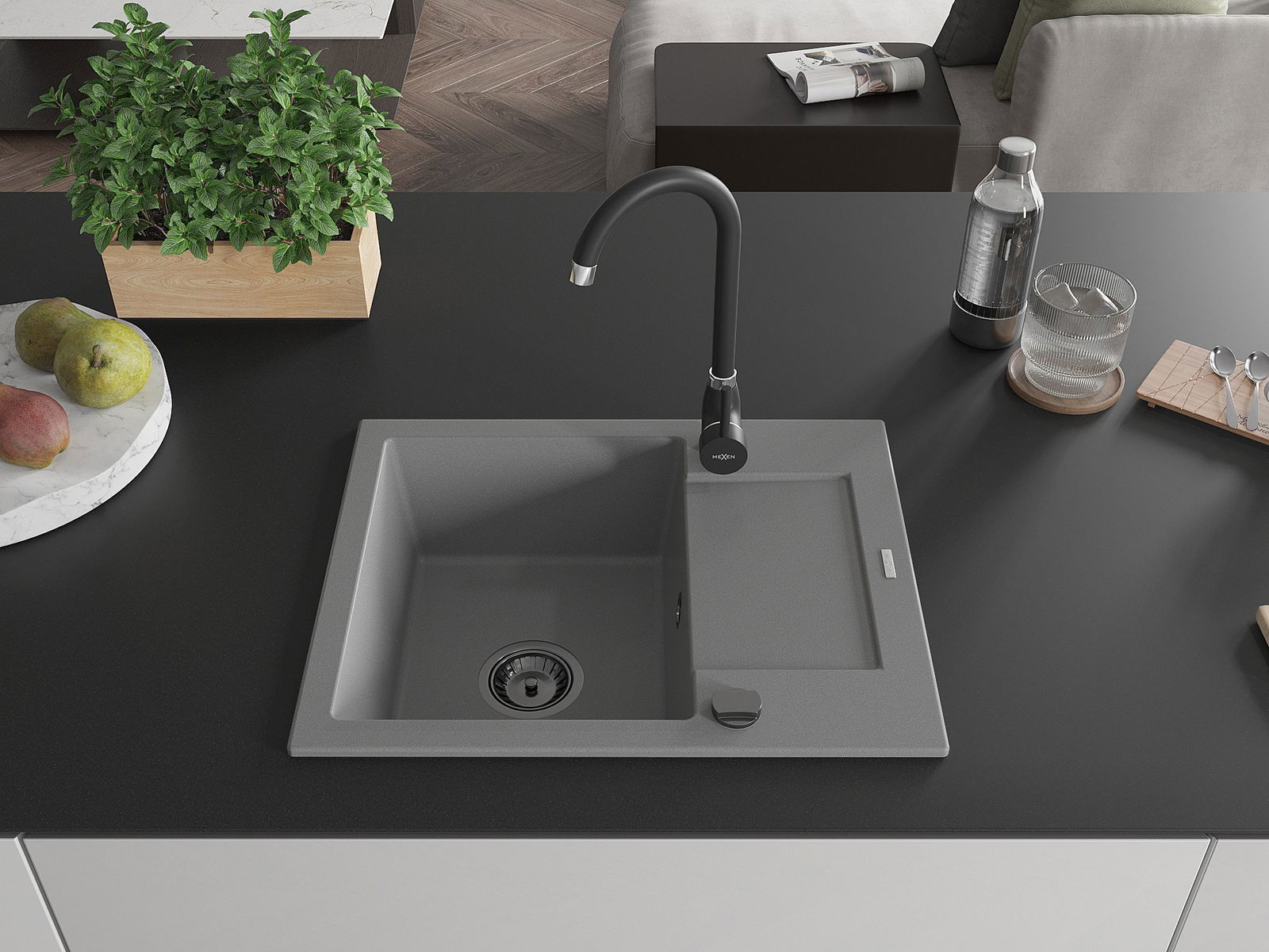 Mexen Enzo Granitspüle 1-beckig mit Abtropffläche und Küchenarmatur Telma, grau - 6506-71-670200-70-B