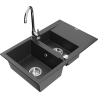 Die Spüle besteht aus hochwertigem Granit. Es ist eine elegante und vor allem praktische Ergänzung zu jeder Küche, unabhängig von ihrem Stil. Hohe Qualität und Granitdauer sorgen für eine langjährige Nutzung.