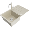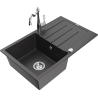 Mexen Bruno Granitspüle 1-beckig mit Abtropffläche und Küchenarmatur Carla, weiß - 6513-20-670700-00