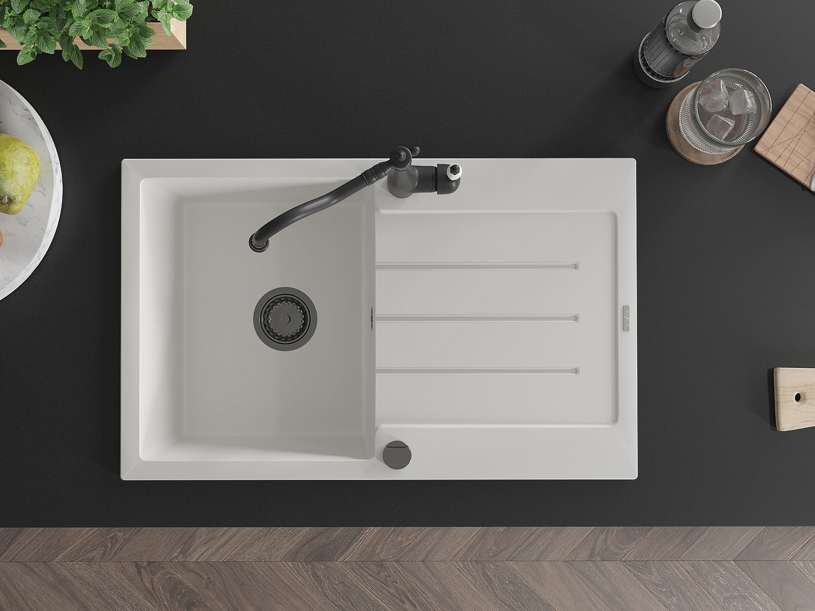 Dank des universellen Montagesystems ist die Spüle reversibel und der Abfluss kann links oder rechts auf der Theke montiert werden. Auf diese Weise können Sie die Seite einfach an Ihre Bedürfnisse und Bedingungen einstellen.