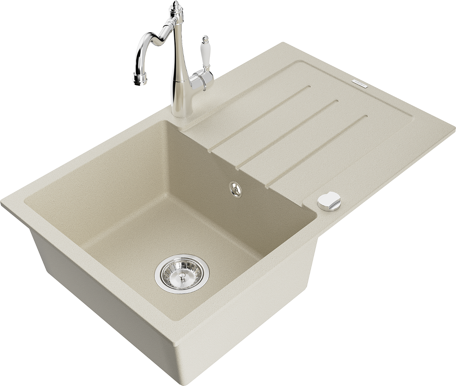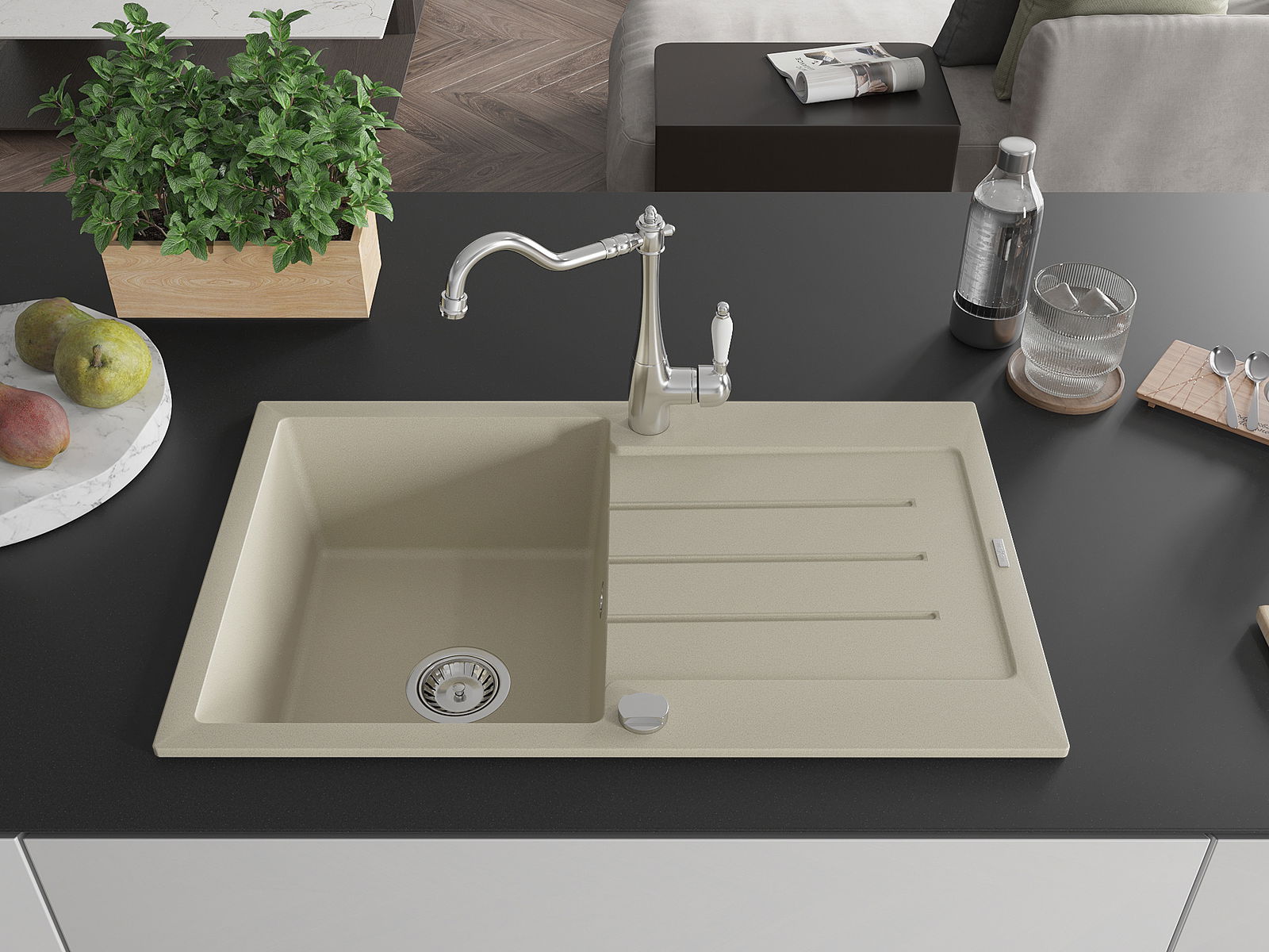 Mexen Bruno Granitspüle 1-Becken mit Abtropffläche und Küchenarmatur Carla, beige - 6513-69-670700-00