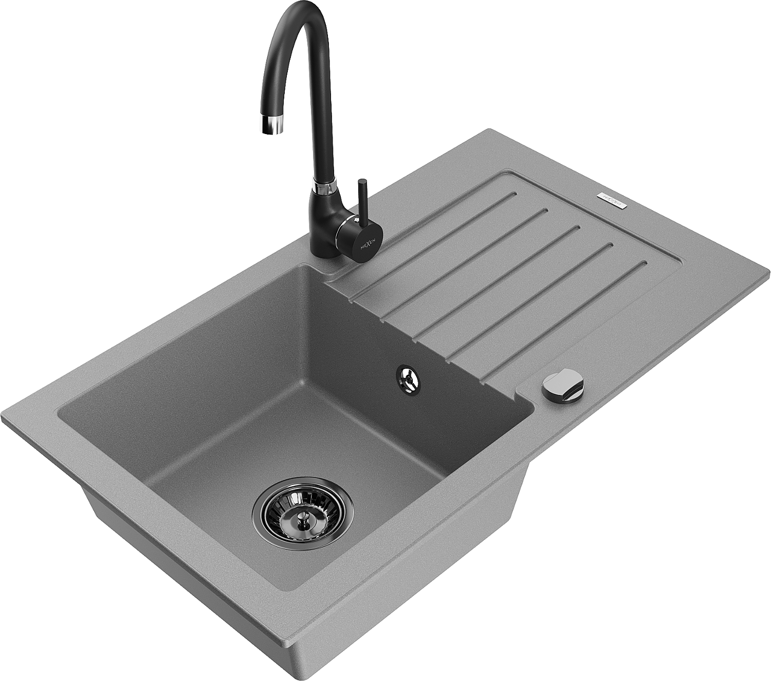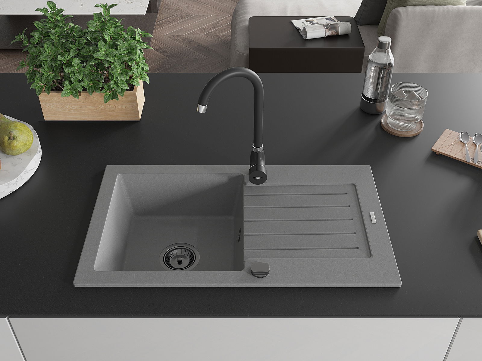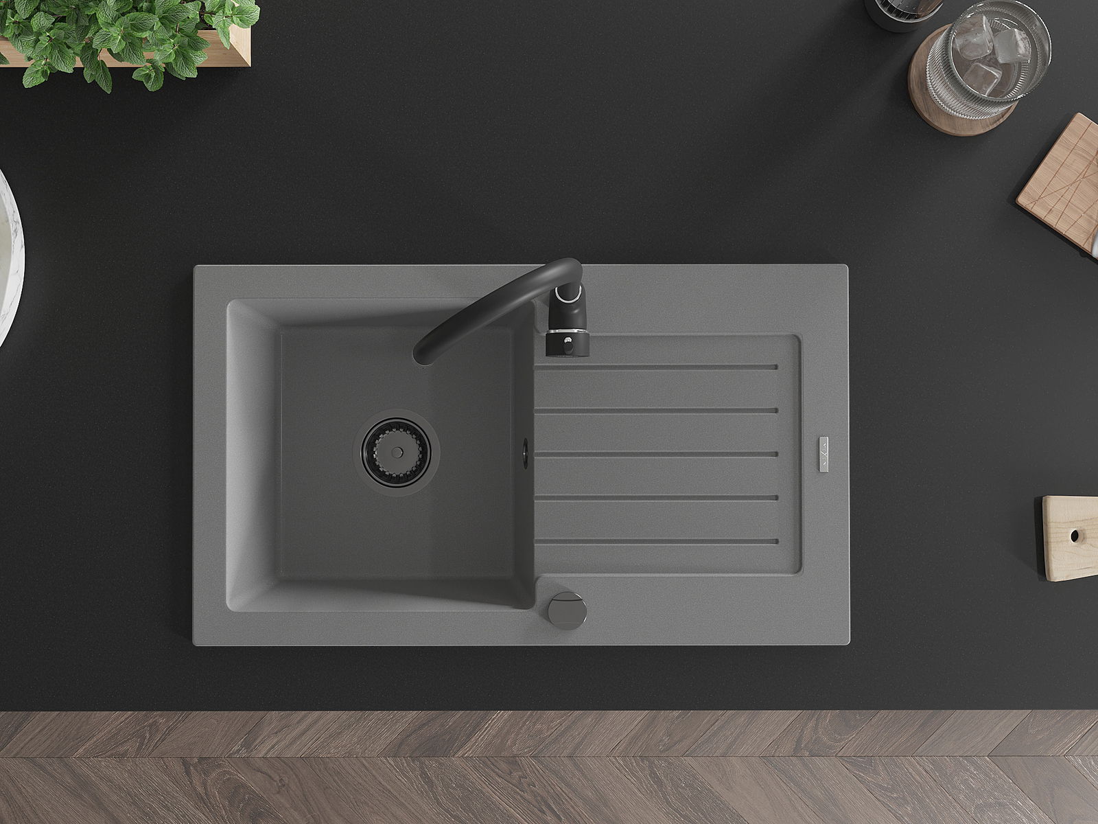 Mexen Pablo Granitspüle 1-beckig mit Abtropffläche und Küchenarmatur Telma, grau - 6510-71-670200-70-B