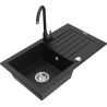 Mexen Pablo Granitspüle, 1-becken mit Abtropffläche und Küchenarmatur Telma, schwarz gesprenkelt - 6510-76-670200-70